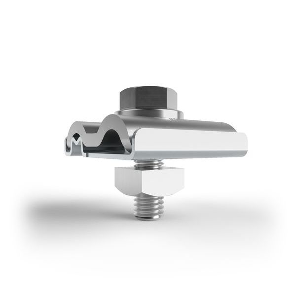 Erdungungs- und Blitzschutzklemme VA M8, Klemmbereich Rd 8-10 mm, Anschluss ein-/mehrdrähtig 4 - 50 mm2, LxBxH: 37 x 32 x 66 mm.